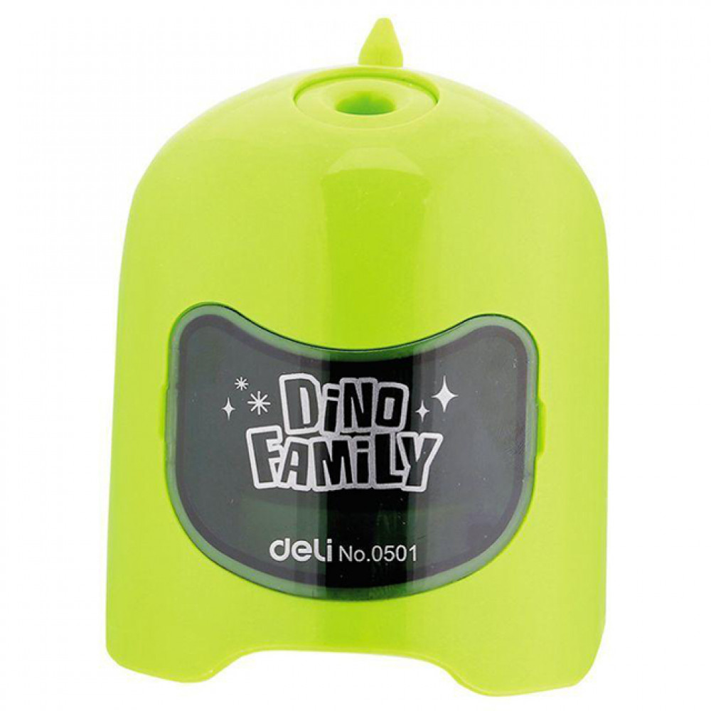 Точилка автоматична Deli 0501E Dino Famaly Дракоша. Оригінальний дизайн корпусу. З такою стругачкою ваша дитина постійно захоче малювати і творити, щоб швидше її використовувати. Точилка застосовується для заточування круглої, шестигранної, трикутної форми кольорових і графітових олівців. Тип точила: електрична. Жилвення: 2 батарейки типу АА (у комплект не входять). Розміри в упаковці: 110х110х1018 мм.